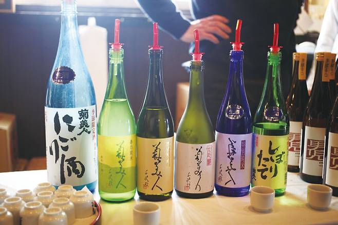 마지막 캠핑의 밤을 위해 기쿠비진(菊美人) 주조장을 찾았다. 시음 후 구입으로 이어졌던 기존의 양조장 투어보다 깊이가 있어 좋았다. 1735년 이래 8대째 양조장을 이은 에자키 슌스케(江崎俊介) 사장은 정미율과 양조 알코올의 첨가 유무에 따라 달라지는 사케의 종류와 현대화된 사케 주조의 과정을 상세하게 설명해 주었다. 심지어 누룩방의 문을 활짝 열어 내부까지 공개했다. ‘기쿠비진(菊美人)’이라는 이름은 시인 기타하라 하쿠슈1885~1942년가 1941년에 남긴 묵필인데, 그의 누나가 에자키 가문으로 시집을 오면서 사돈관계가 되었다. 일본에서는 시성이라 불릴 정도로 워낙 유명한 시인이라 매장에는 창업자의 초상화보다 그의 사진이 더 크게 걸려 있다. 상세한 설명 덕분에 사케에 대한 새로운 깨달음을 얻은 이들은 이미 포화상태인 캠핑 배낭의 무게를 가볍게 극복했다. 어차피 혼곤한 봄이 아닌가.