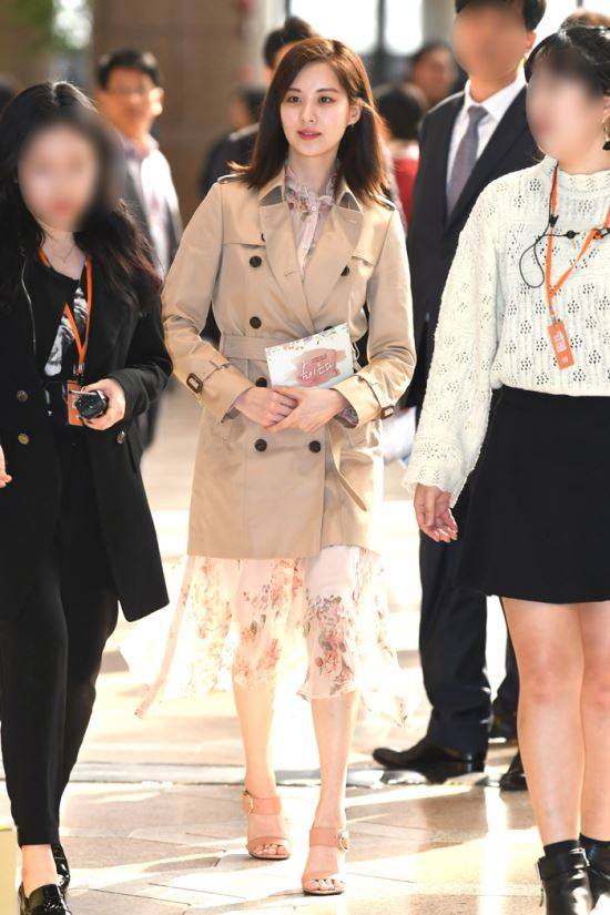 걸그룹 소녀시대 출신 서현은 평양공연을 준비 중일때 이 원피스를 입었다. 추운 날씨 탓에 트렌치 코트를 위에 입었다.