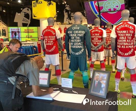 팬샵 곳곳에는 벵거 감독의 사진과 함께 '메르시 아르센'이 프린팅 되어 있었다. 가장 눈에 띄었던 것은 벵거 감독이 즐겨맸고, 마지막 홈경기날까지 착용하고 경기장에 나왔던 '빨간 넥타이' 였다. 또한 '트레이드마크' 롱패딩을 입은 벵거 피규어, 벵거 감독의 20주년을 기념해 나온 유니폼 모음 배지 세트 등도 눈길을 끌었다.
