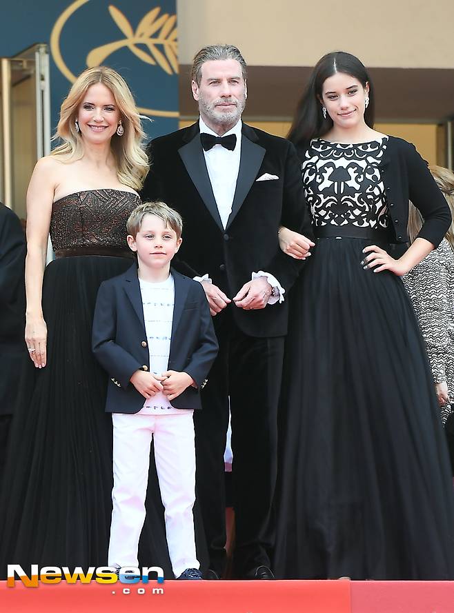 [포토엔HD] 존 트라볼타-켈리 프레스톤 부부 '붕어빵 딸&아들과 다정히 칸 레드카펫'