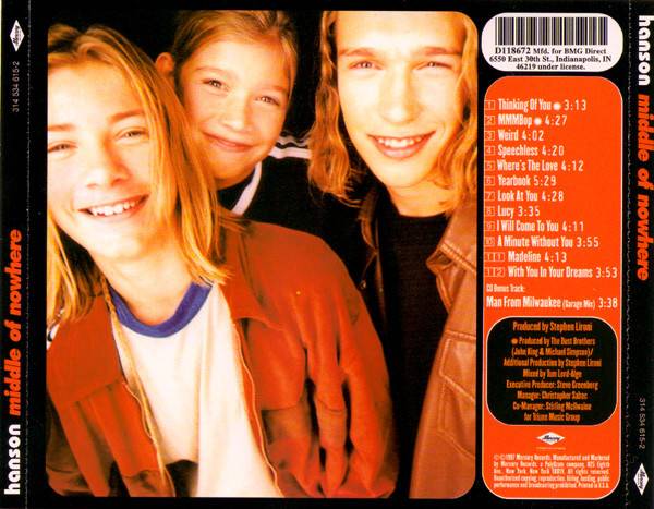 이들은 모두 독실한 가톨릭 신자들이다. 초기에는 가톨릭 관련 무대에 서면서 인디 앨범 형태로 음반을 냈다. 메이저 데뷔 앨범은 1997년 발표한 세 번째 앨범이었다. '미들 오브 노웨어(Middle of Nowhere)'로 이름 붙은 이 앨범이 오늘날의 핸슨을 있게 한 원동력이 됐다. 여기 실린 싱글 '음밥(MMMbop)'이 전 세계를 강타한 것이다.
