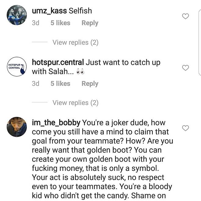 그러나, 그 부분까지 미리 헤아리고 자신부터 논란을 일으킬만한 표현을 쓰지 않는 것까지가 스타 선수들이 짊어지고 있는 숙명이다. 안타깝지만 사실이다. 그리고 이미 지난 두 시즌 EPL 득점왕을 차지한 케인이라는 선수는 충분히 그런 점을 알고 있었어야 하는 선수다. 바로 그 부분이 팬들이 그에게 실망하는 부분이 아닐까. 기대가 없으면 실망할 것도 없다.