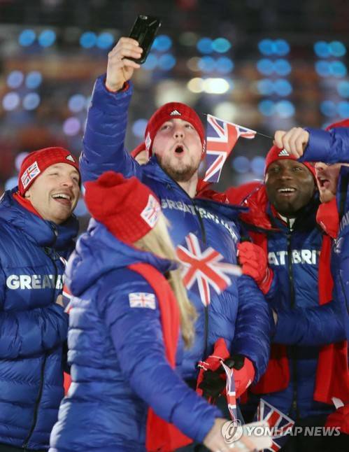 (평창=연합뉴스) 박동주 기자 = 9일 오후 강원도 평창 올림픽스타디움에서 열린 2018 평창동계올림픽 개막식에서 영국 선수단이 입장하고 있다. 2018.2.9