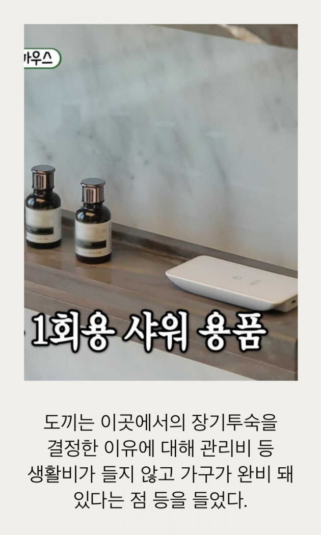 도끼는 이곳에서의 장기투숙을 결정한 이유에 대해 관리비 등 생활비가 들지 않고 가구가 완비 돼 있다는 점 등을 들었다.