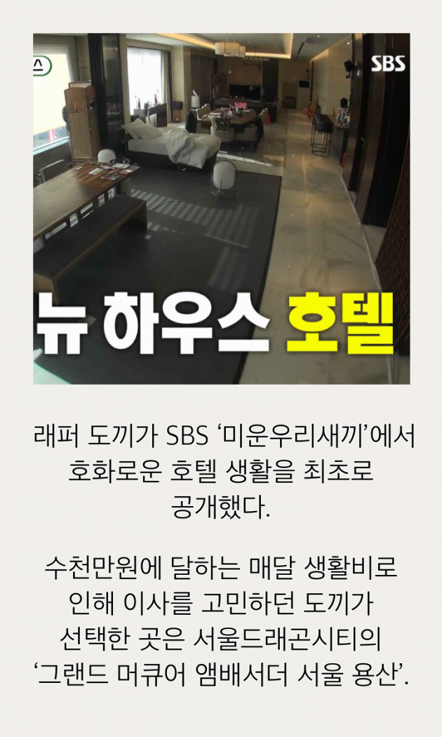수천만원에 달하는 매달 생활비로 인해 이사를 고민하던 도끼가 선택한 곳은 서울드래곤시티의 '그랜드 머큐어 앰배서더 서울 용산'.