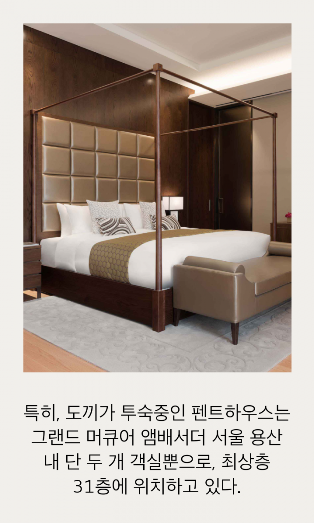 특히, 도끼가 투숙중인 펜트하우스는 그랜드 머큐어 앰배서더 서울 용산 내 단 두 개 객실뿐으로, 최상층 31층에 위치하고 있다.