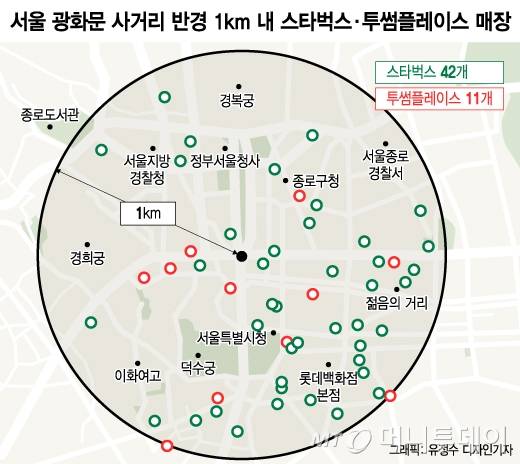 [MT리포트]광화문 반경 1km내 스타벅스 42개, '별'천지 커피시장
