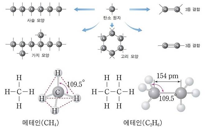 1개 탄소·4개 수소인 C-H사면체가 기본이죠