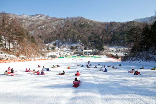 한화리조트 양평 눈썰매장은 약 5,000여평 부지에 성인용 180m, 유아 및 노약자용 80m의 슬로프를 갖췄다. 또한 눈썰매 외에도 토마스기차, 미니바이킹, 코브라 미니전동카, 에어바운스 등 어린이들을 위한 다양한 즐길 거리도 준비되어 있다.