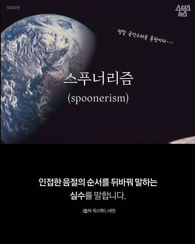 이렇게 앞 음절 순서를 바꿔 말하는 말실수를 칭하는 용어가 있다. '스푸너리즘'.