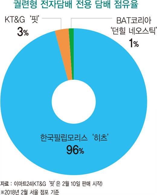 다만 각 기기에 사용하는 전용 담배의 점유율은 한국필립모리스의 ‘히츠’가 96%로 압도적이다.