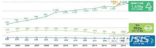 인구 1만명당 환경성질환자수는 1983명으로 이중 알레르기성 비염은 1,430명, 아토피 피부염은 201명, 천식은 352명으로 집계됐다.