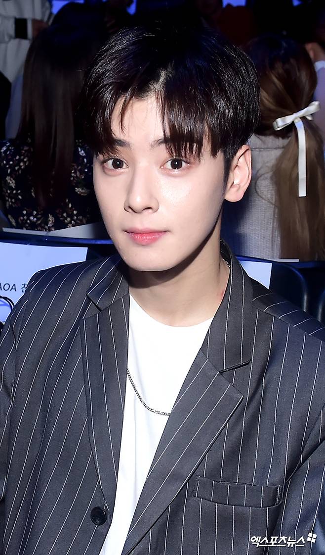 [엑스포츠뉴스 서예진 기자] 23일 오후 서울 동대문 디자인플라자(DDP)에서 진행된 ‘헤라서울패션위크 F/W 2018’ 참스(CHARM'S) 콜렉션에 참석한 아스트로 차은우가 포즈를 취하고 있다.