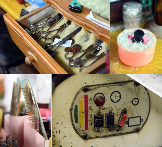 조발(調髮)이라고 쓰인 낮설은 요금표, 50대 후반의 기자도 기억이 날 듯 말 듯한 바론상사의 이발의자는 곳곳이 터지고 헤져 테이프로 감싸여 있었다. 이발소 안을 따뜻하게 덥혀주는 구식 연탄난로와 솔을 비벼 거품을 낸 자국이 선명한 양철물통, 나무 칠이 벗겨진 격자 유리창 아래 50년은 족히 넘었을 타일이 박힌 세면대와 세월의 때가 덕지덕지한 파란색 물조리개, 낡은 선풍기까지 과거 어느 시점으로 시간은 멈춰서 있었다. 거기에다 이곳을 찾은 손님들을 한 번 더 놀라게 하는 것은 장인이 사용하는 이발도구들이다. 이 씨가 가장 애지중지하는 것은 140년 된 독일제 쌍둥이표 면도칼과 가위다. 면도칼은 나이가 들어 이발을 그만두게 된 일본인 이발사한테 1966년에 1,200원을 주고 구입했다. 이 면도칼은 이 씨가 마음이 차분한 날, 70년 된 최상품 미국제 말가죽에다 정성껏 손질한다. 또 다른 애장품인 가위는 이 씨가 젊은 시절 일주일 동안 한 푼 안 쓰고 모은 돈 700원을 주고 구입했다. 요즘 가위들은 몇 년 쓰면 날이 무뎌지지만 이 명품 가위는 숫돌에 손질만 잘 하면 자신이 죽을 때까지 써도 전혀 문제가 없단다.