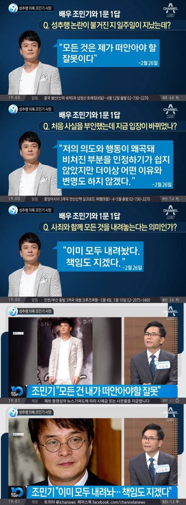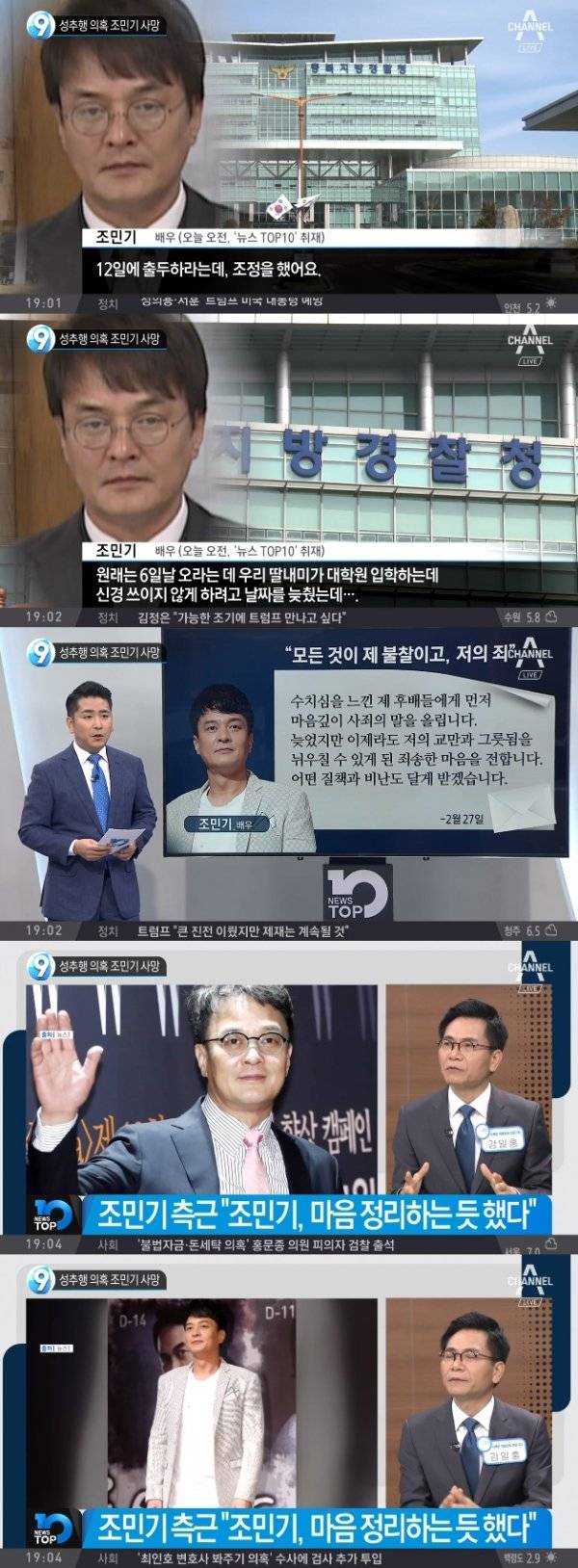이날 저녁 방송된 채널A '뉴스TOP10'에서는 조민기의 사망 소식이 다루면서 조민기의 전화 음성을 공개했다.