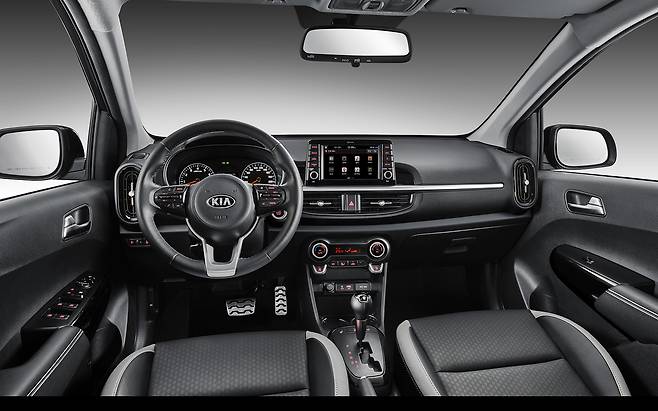 현대기아차의 실내 디자인은 세계 어떤 양산차와 비교해도 뒤지지 않는다는 평가다. 모닝은 요즘 트렌드인 돌출형 내비게이션을 적용해 직관적으로 버튼을 조작할 수 있다는 것이 특징이다. 경차의 실내라고 하기엔 깔끔하고 고급스런 모습이다. 상급 모델인 스토닉과 비교해도 뒤지지 않는다.