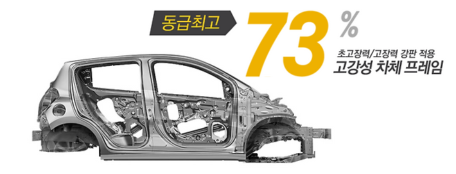 경차는 차의 크기가 작기 때문에 '충돌에 약하다' '안전성이 떨어진다'라는 이미지를 갖고 있다. 하지만 그것은 이미지일 뿐이다. 모닝의 경우 2017년 풀체인지 출시 때 초고장력 장판 비율을 기존의 2배 수준인 44%로 늘려 강성을 높였다고 밝혔다. '통뼈경차' 라는 키워드를 앞세워 튼튼하다는 이미지의 스파크와 겨뤄보겠다는 뜻으로 보였다. 하지만 모닝은 자동차안전도평가(KNCAP)의 충돌안전테스트 결과 77.1점으로 3 등급을 받는데 그쳐 아쉬움을 남겼다. '통뼈경차'라는 키워드에 걸맞지 않는 결과였다.