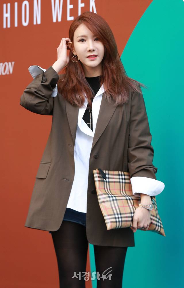가수 정아가 22일 오후 서울 중구 동대문디자인플라자(DDP)에서 열린 '2018 F/W 헤라서울패션위크' 미스지컬렉션(MISS GEE COLLECTION) 포토월 행사에 참석해 포즈를 취하고 있다.