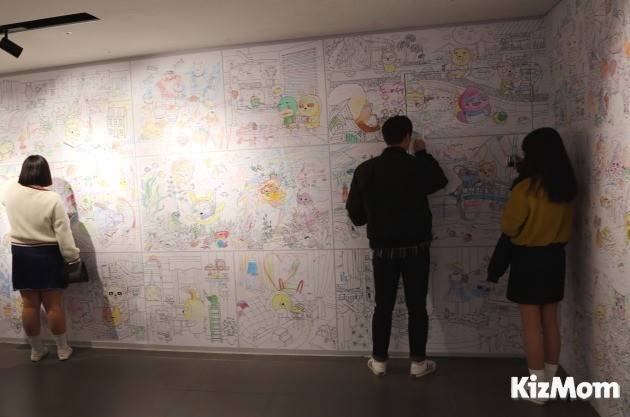 전시 마지막 섹션에는 벽면 전체에 관람객들이 직접 캐릭터를 채색할 수 있는 대형 컬러링 공간을 마련해 아이와 함께 직접 작품을 완성할 수 있는 기회를 가져보자.