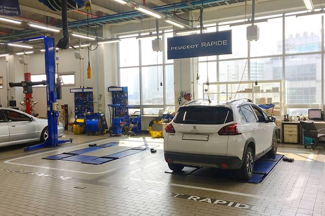 한불모터스는 서비스센터 입고 고객의 약 60%가 정기점검 및 단순 부품 교환을 위해 방문하는 것을 고려해 ‘푸조 라피드’ 퀵 서비스를 런칭했다. 신속하고 효율적인 정비를 통해 고객들의 대기시간을 최대한 줄임으로써 고객만족을 극대화 하겠다는 계획이다.