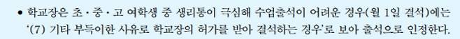 ? 학교장은 초?중?고 여학생 중 생리통이 극심해 수업출석이 어려운 경우(월 1일 결석)에는