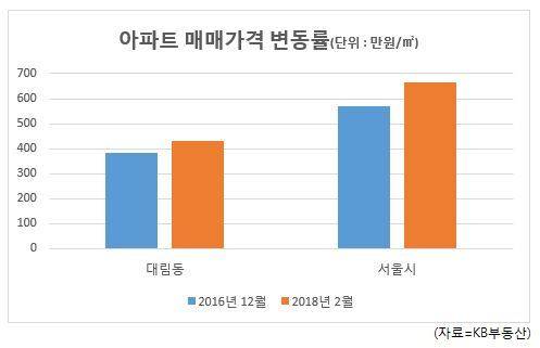 반면 주택가격 측면에서 대림동은 여전히 빛을 보지 못하고 있다. KB부동산에 따르면 2016년 말 대비 대림동 아파트 전세가격 상승률은 6.1%로 서울시 평균(6.4%)과 엇비슷했다. 대중교통 이용이 편리하면서 비교적 저렴한 지역을 찾은 실수요자들이 모여들었기 때문이다. 이에 비해 매매가격 상승률은 서울시 평균(16.6%)의 75% 수준인 12.7%에 그쳤다. 실수요자들이 아파트 가격 상승을 이끄는 매매수요로 가세하지 못하고 있는 것이다. 모여든 중국인은 대부분 일용직이나 가사도우미 등으로 생계를 꾸리고 있어 아파트 잠재수요층이 되긴 역부족이다.