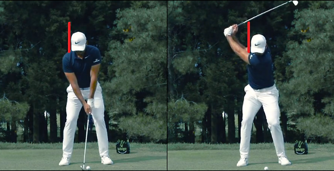 우선 데이는 백스윙 시 머리의 움직임이 거의 없이 제자리에서 동작을 만들고 있다.