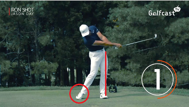 큰 움직임 없이 팽팽하고 단단하게 백스윙을 만든 뒤 다운스윙 전환하며 강력한 임팩트를 만드는 포인트는 왼쪽 힙과 오른발 동작에 있다고 볼 수 있다.