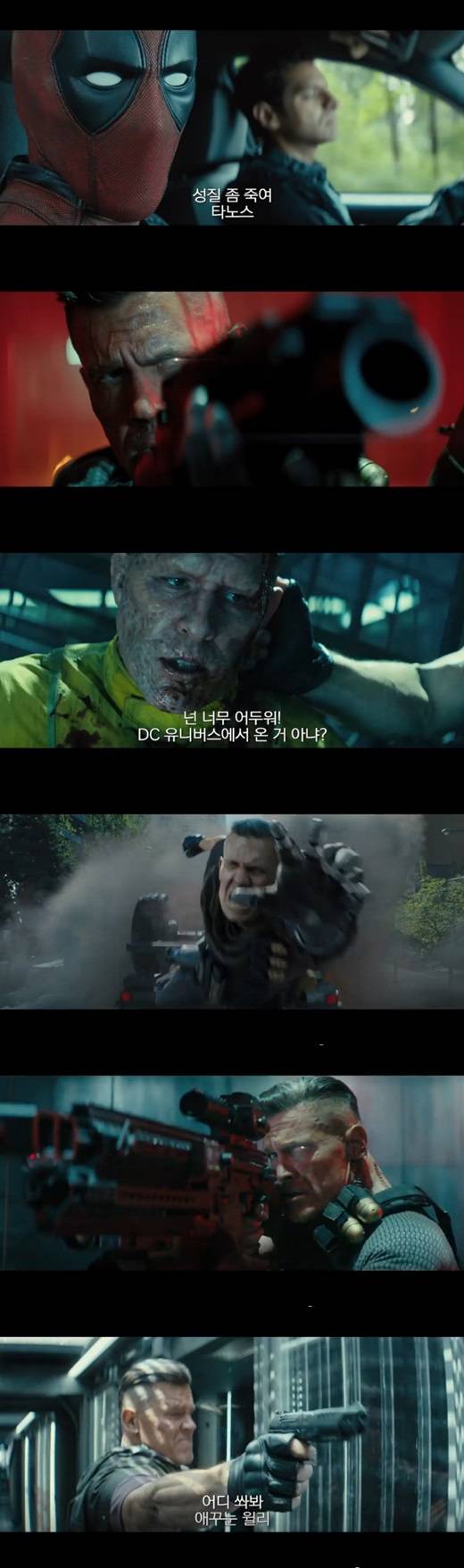 그렇다보니 국내 팬들 또한 그를 '어벤져스: 인피니티 워'에 이어 '데드풀2'에서도 볼 수 있게 됐다. 특히 '데드풀' 특유의 병맛 대사들이 묻어나는데, 예고편에서 데드풀은 "성질 좀 죽여, 타노스", "넌 너무 어두워! DC유니버스에서 온 거 아냐?"라는 웃긴 대사들로 시선을 사로잡는다.