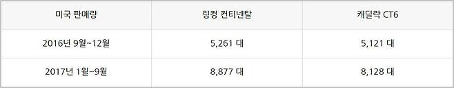 우선 미국 시장 판매량을 비교해보자. 컨티넨탈의 판매량이 CT6를 앞선다. 물론 차이가 큰 것은 아니지만 상징적 의미 정도는 부여될 수 있겠다. 그럼 링컨이 캐딜락보다 잘 팔려서일까? 아니다. 캐딜락은 링컨보다 매월, 그리고 연간 판매량에서 2배가량 많이 팔린다. 그런 볼륨의 차이를 생각한다면 컨티넨탈이 상당한 성공을 거뒀다고 볼 수 있다.