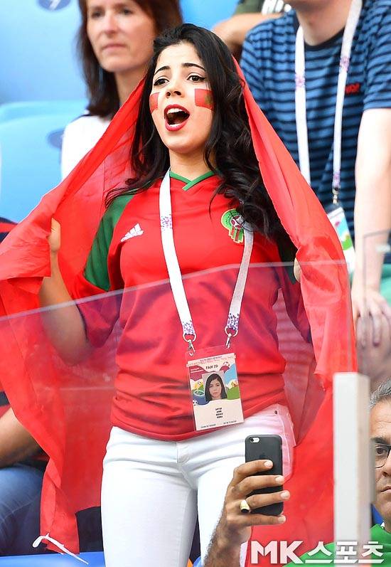 경기전 모로코 여성팬이 응원을 하고 있다.