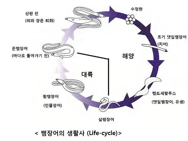 그렇다면 이 많은 뱀장어의 고향은 어디일까. 국내 뱀장어 양식장에서 태어나고 자랐을까. 전혀 그렇지 않다. 연어와는 반대로 강에서 살다가 먼바다로 이동해 알을 낳는다. 뱀장어의 생활사(Life-cycle)은 아직도 완전히 밝혀지지 않았다. 우리가 먹는 뱀장어의 고향을 추적해보자.
