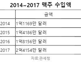 수입량도 매년 늘고 있습니다. 관세청에 따르면 지난해(1~11월) 맥주 수입액은 2억4154만 달러로 지난해보다 45% 증가했습니다. 12월 수입액이 집계되지 않았지만 11월 누계만으로 이미 역대 최고 실적을 넘어선 셈이죠. 또 맥주는 지난 7월 이후 와인·양주를 제치고 수입 주류 1위(수입액 기준)에 올라섰습니다.