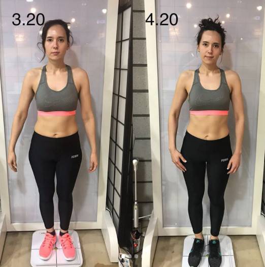 3월 20일과 4월 20일에 찍은 몸매 사진이었다. 눈에 띄는 변화는 아니지만 조금씩 몸의 균형이 잡혀가는 모습이 시선을 사로잡는다.
