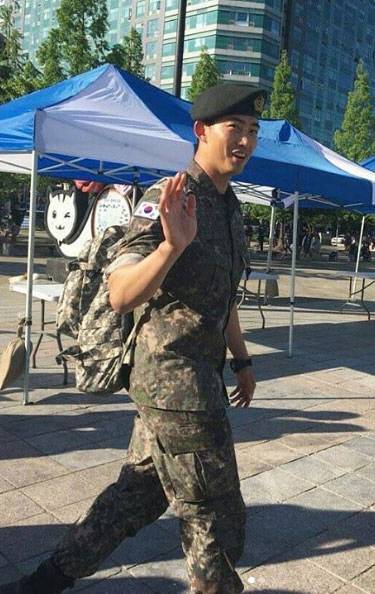 공개된 사진 속 옥택연은 베레모에 군복을 입고 더 다부진 체격을 과시하고 있다. 여전히 잘생긴 얼굴과 자신을 알아보는 팬들을 위한 손인사까지 매너까지 완벽한 모습.