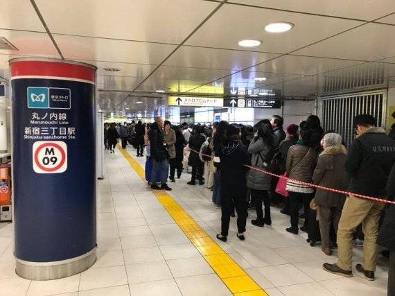 | 일본 도쿄 신주쿠구 신주쿠 이세탄 백화점 앞에 사람들이 입장을 위해 줄을 서고 있다. 줄의 끝이 보이지 않을 정도로 많은 사람들이 모였다. /사진=fnDB |