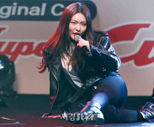 이날 청하가 무대를 선보이고 있다.