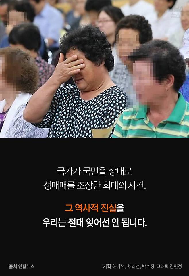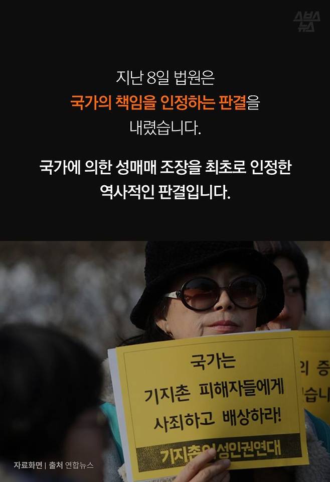 2014년 기지촌 출신 여성들은 국가가 성매매를 조장했다며 손해배상 소송을 제기했습니다. 지난 8일 법원은 4년 만에 성매매를 조장한 국가의 책임을 인정한 판결을 내렸습니다. 국가가 국민을 상대로 성매매를 조장한 희대의 사건, 그 역사적 진실을 우리는 절대 잊어선 안 됩니다.