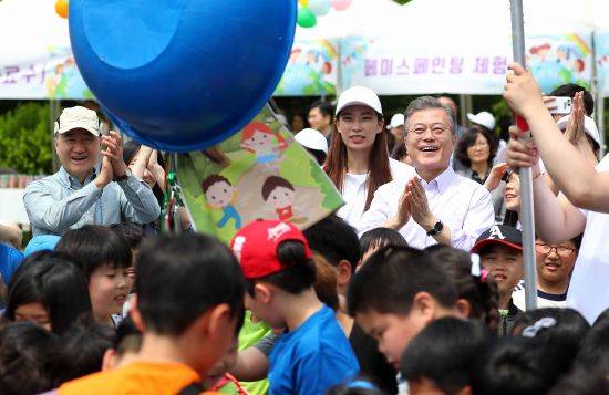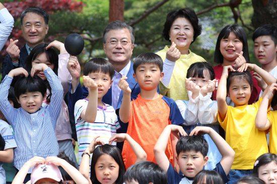 문재인 대통령과 김정숙 여사 내외가 5일 취임 후 첫 어린이날을 맞아 어린이들을 초청해 즐거운 한때를 보냈다.