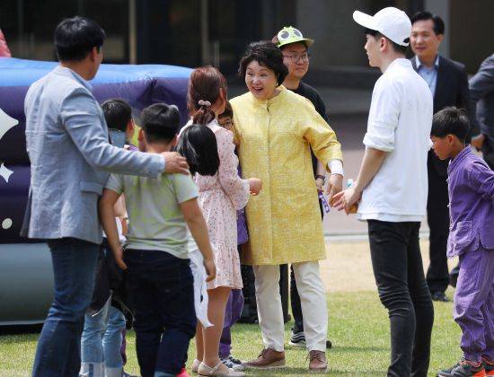 문 대통령 내외는 이후 어린이들을 비롯해 자원봉사자, 청와대 직원 등과 기념촬영을 하고 행사를 마무리했다.