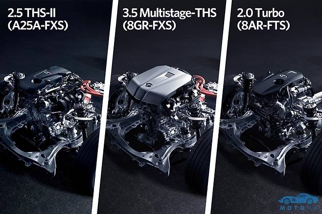 크라운에 사용되는 2.5리터 다이나믹 포스 엔진 기반의 하이브리드 시스템은 세로배치형으로 조정이 이루어졌으며, 우수한 동력성능과 향상된 연비를 자랑한다. 시스템 합산 최고출력은 226마력을 발휘한다. 멀티스테이지 하이브리드 시스템은 359마력의 최고출력을, 2.0 가솔린 터보 엔진은 245마력의 최고출력을 낼 수 있도록 만들어진다.