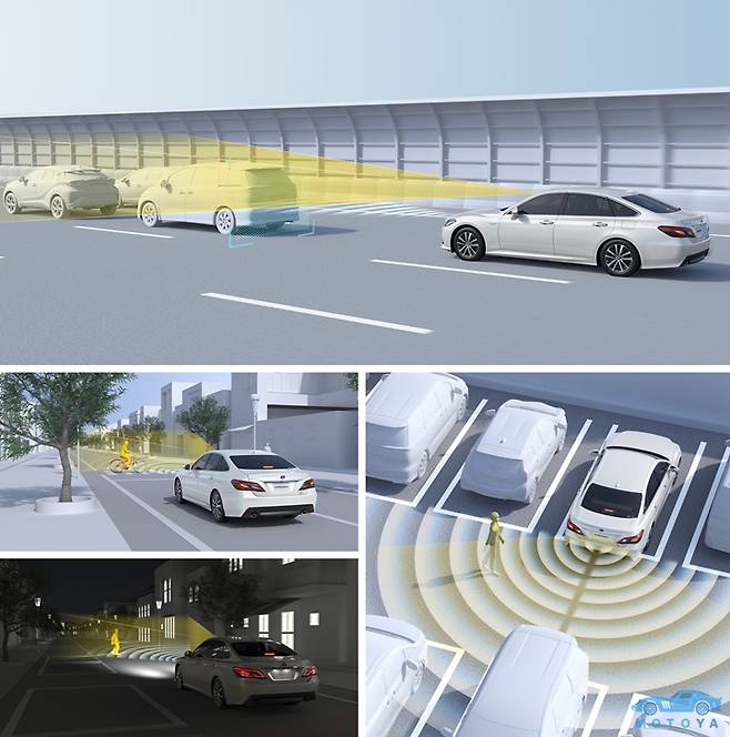 새로운 크라운에는 토요타의 선진 안전 시스템인 ‘토요타 세이프티 센스’가 전 차종 기본 장비된다. 크라운에 적용되는 토요타 세이프티 센스는 2세대에 해당하는 시스템으로, 주간 한정으로 자전거 운전자를 감지할 수 있고 보행자는 주/야간 모두 감지 가능한 충돌 회피지원 기능을 제공한다. 이 외에 선행 차량의 레이더 크루즈 컨트롤을 비롯하여 차선 중앙을 추적하여 조향을 지원하는 차로 추적 어시스트, 자동 하이빔, 도로교통표지 알림 기능 등을 지원한다. 또한 후진 시 교행차량 및 보행자를 감지하는 후방 교행 감지 기능을 제공하며, 토요타 최초로 후진 시 보행자를 감지한 경우 자동으로 제동하는 기능을 도입했다.