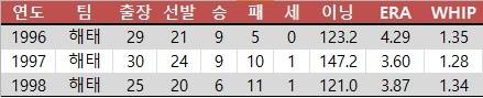 [기록 출처 및 참고 : 야구기록실 KBReport.com, 스탯티즈, KBO기록실]