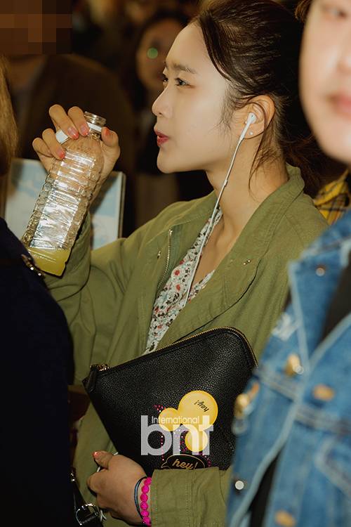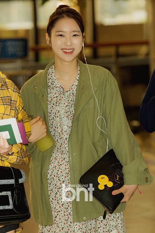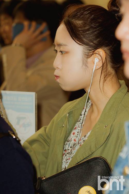 오마이걸 지호가 출국을 기다리며 다양한 표정을 짓고 있다.