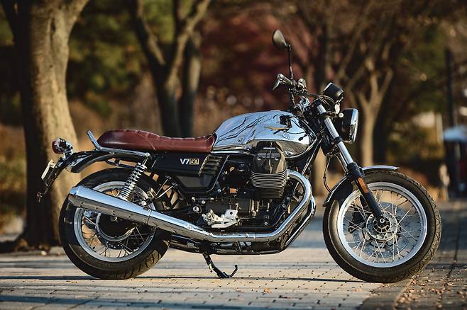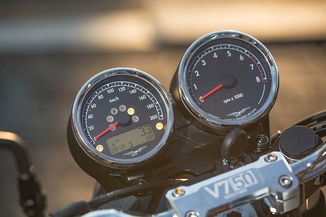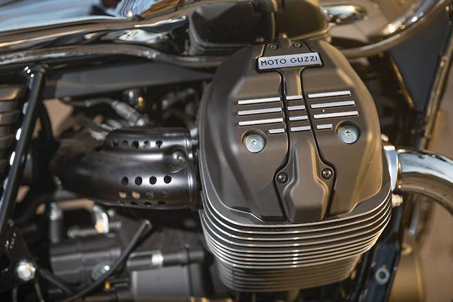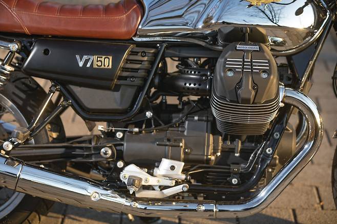클러치는 가벼워졌다. 여전히 건식 단판 클러치를 쓰기 때문에 클러치를 미트 시키는 순간의 감각은 여전히 독특하다. 엔진이 회전하며 바이크를 좌우로 흔드는 토크 리액션도 그대로다. 출력은 48마력에서 약간 늘어난 52마력이며 토크는 기존과 거의 같은 60Nm다. V7에 늘 붙어 다니던 '50마력도 안 되는…' 이라는 꼬리표는 이제 떼도 되겠다.