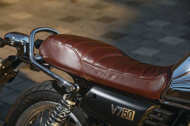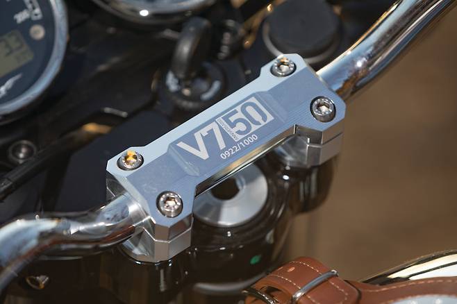새로운 V7 III 중에서도 애니버사리오(Anniversario) 는 V7 시리즈의 탄생 50주년을 기념하기 위한 기념 모델이다. 전 세계 1000대 한정 생산으로 탑 브리지 위에 레이저로 시리얼 넘버가 각인된다. 애니버사리오 모델은 천연 가죽 시트에 가죽 탱크 벨트, 그리고 크롬 연료 탱크와 전후 알루미늄 펜더, 크롬 머플러 등 특별한 파츠들을 기본으로 장비한다. V7과 50주년의 숫자를 이어 V7역사의 시작점인 V750의 모델명으로 보이도록 표기하는 것이 재밌다. 얼마 전까지 V7 II 스페셜을 타고 있었다. 그 V7 II 스페셜은 처음부터 레이서의 크롬 탱크를 얹은 상태로 주문해 출고했던 나만의 스페셜 모델이었다. 그런데 이렇게 순정으로 비슷하게 나와 버리니 어쩐지 질투도 나고 맥 빠지는 느낌도 있다.(웃음)