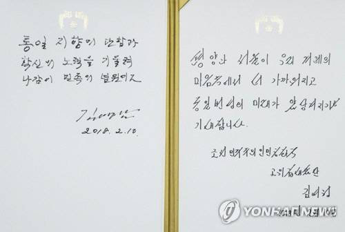 - 김여정 방명록에 "평양-서울 겨레 마음 속 더 가까워지길 기대"