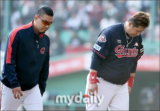 [MD포토] 이대호-송승준, '개막 2연패에 고개를 들수가 없네'
