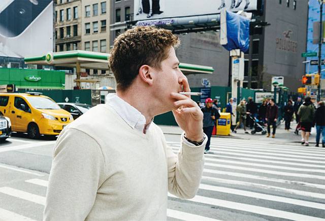 미국 성인 6명 중 1명은 흡연자다. 길에서 담배를 피우고 있는 미국 남성.