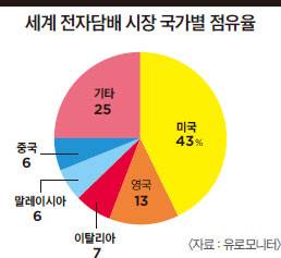 세계 전자담배 시장에서 약 43%를 차지하는 미국에서는 최근 전자담배를 둘러싼 규제 논의가 한창이다. 앞서 미국은 1971년 일반담배의 TV·라디오 광고를 금지했고, 1997년부터 간판 등 인쇄매체 광고까지 금지했다. 2003년 WHO의 주도로 미국을 비롯한 192개국이 ‘담배규제협약’에 서명하면서, 광고는 물론 판촉 행위까지 모두 금지됐다. 그러나 전자담배는 다르다. 아직 유해성이 명확히 검증되지 않아 규제 도입이 미뤄지고 있다.
